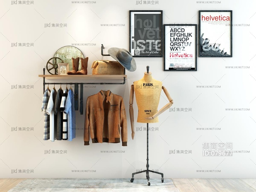 LOFT美式半身服装模特,货架衣架帽子 3d模型下载 [模型ID:79677]