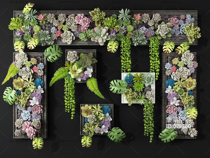 鲜花植物墙,绿植背景墙, 3d模型下载