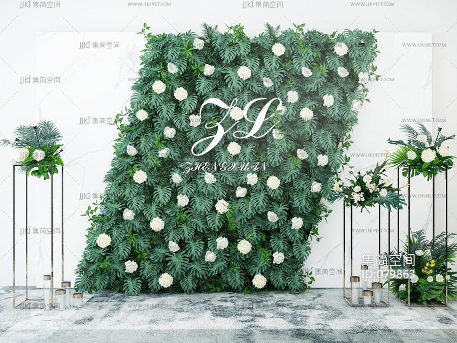 鲜花植物墙,绿植背景墙 3d模型下载 [模型ID:79863]
