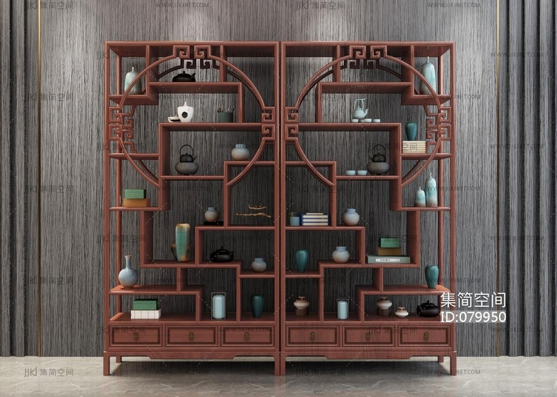 古典实木博古架,书架,摆件,茶具多宝阁格 3d模型下载 [模型ID:79950]