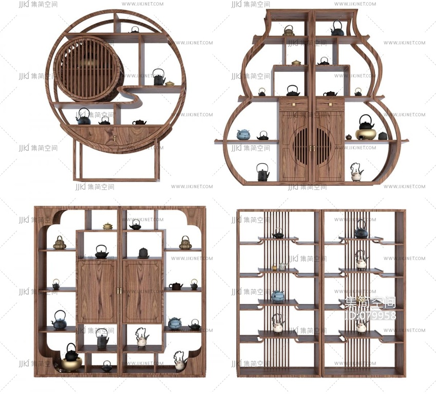 新中式古典实木博古架多宝阁格 3d模型下载 [模型ID:79958]