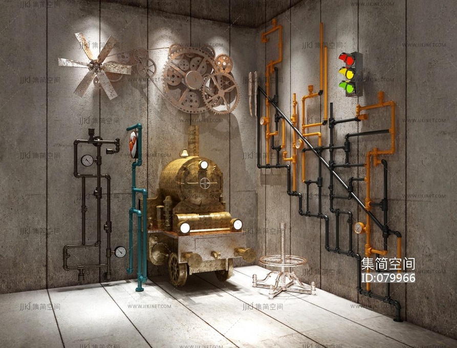 工业风格LOFT配件,水管子管线管道,火车头,齿轮,压力表, 3d模型下载 [模型ID:79966]