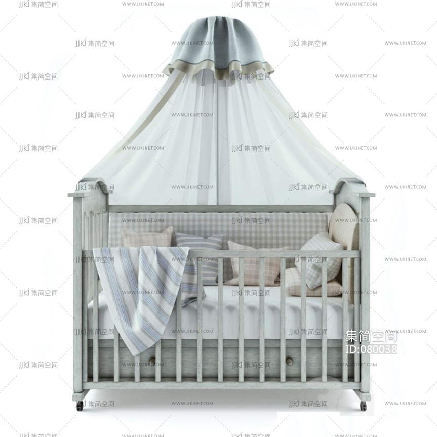 欧式美式儿童婴儿床摇篮窗幔 3d模型下载 [模型ID:80038]
