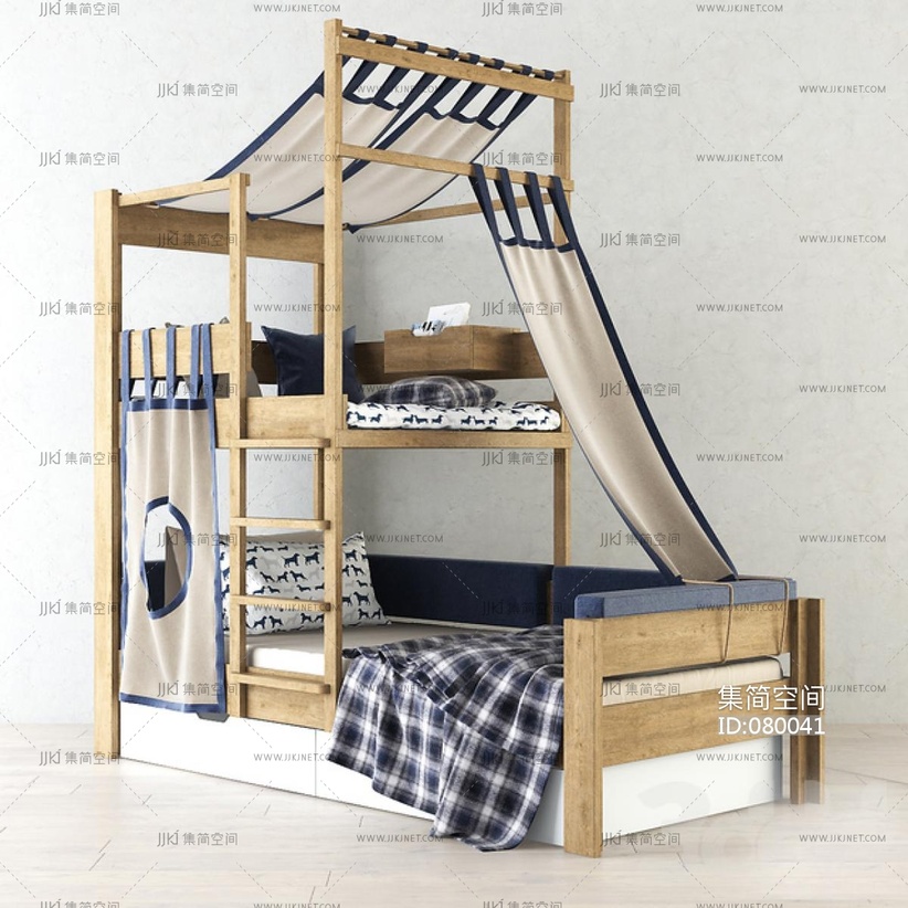 男孩房木架子床上下床 3d模型下载 [模型ID:80041]