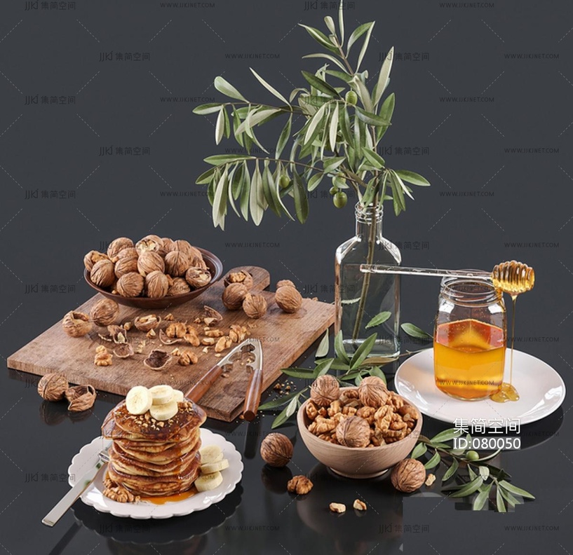 核桃早餐食物花瓶餐桌摆件 3d模型下载 [模型ID:80050]