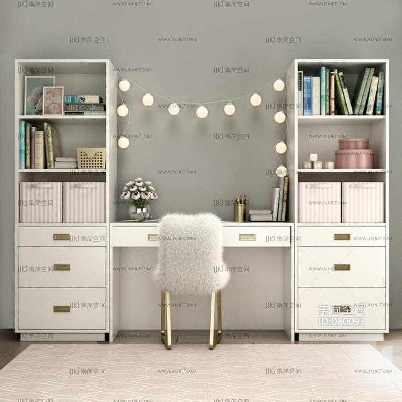 现代简欧式儿童房书柜,写字台 3d模型下载 [模型ID:80093]