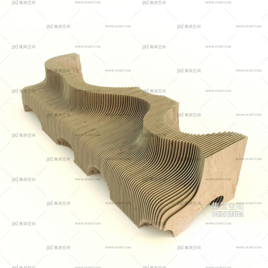 室外异形木条公共座椅 3d模型下载 [模型ID:80107]