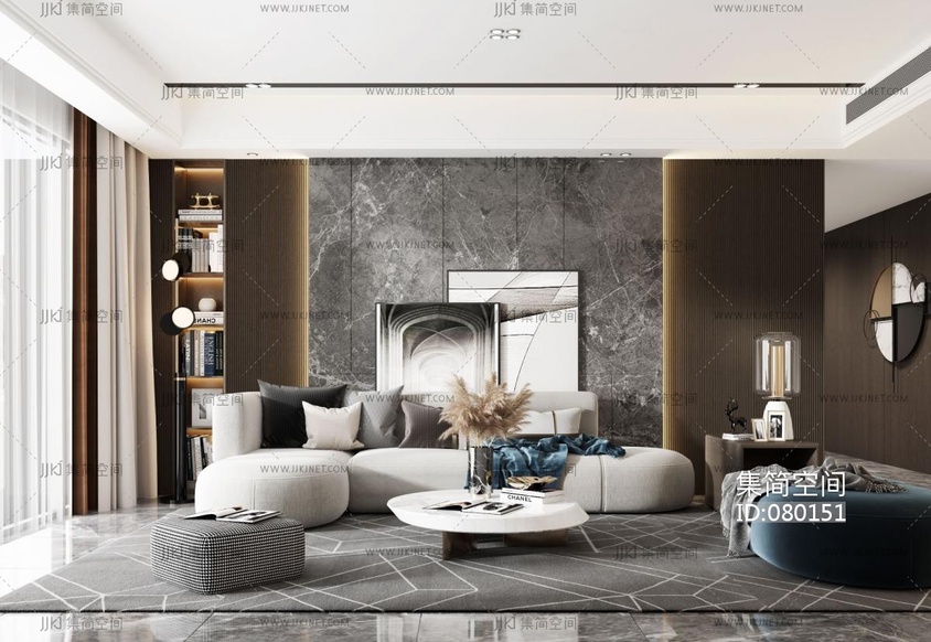 现代客厅,软体转角沙发 3d模型下载 [模型ID:80151]