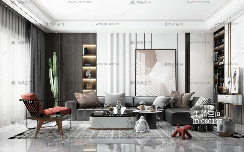 简约风格客厅沙发,单人休息椅子边几,摆台 3d模型下载 [模型ID:80157]