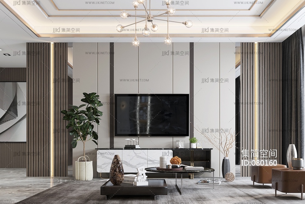 轻奢客厅,转角沙发,沙发凳 3d模型下载 [模型ID:80160]