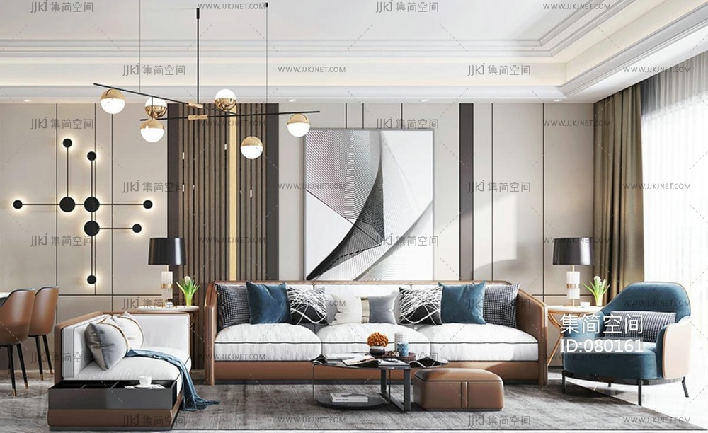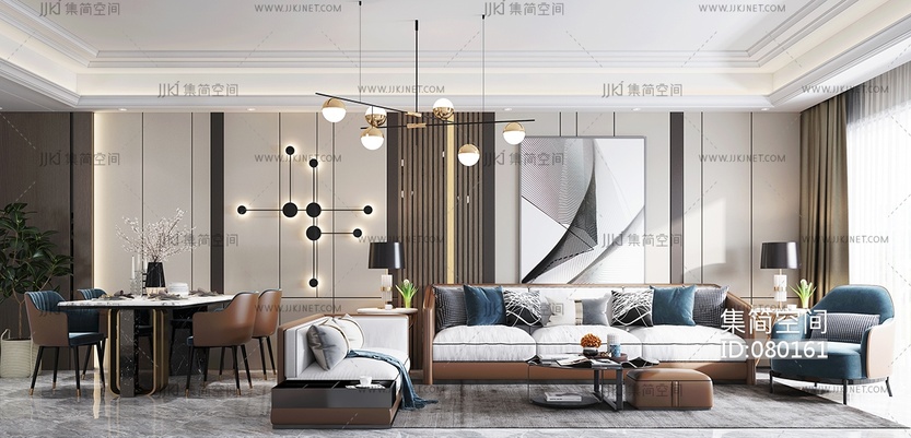 轻奢客餐厅沙发茶几组合餐桌餐椅,卧榻美人踏 3d模型下载 [模型ID:80161]