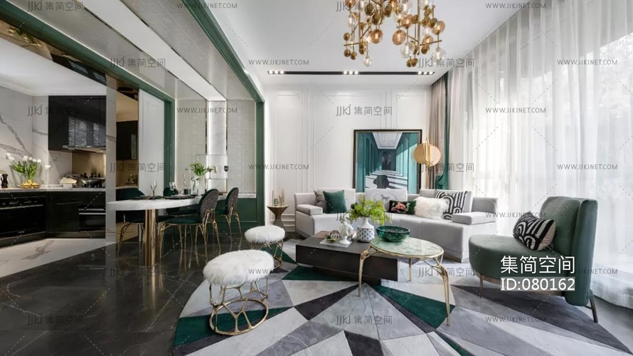 混搭轻奢客厅餐厅,弧形异形沙发茶几,餐桌椅子, 3d模型下载 [模型ID:80162]