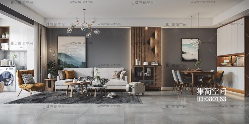 北欧客餐厅餐厅阳台,沙发 3d模型下载 [模型ID:80163]