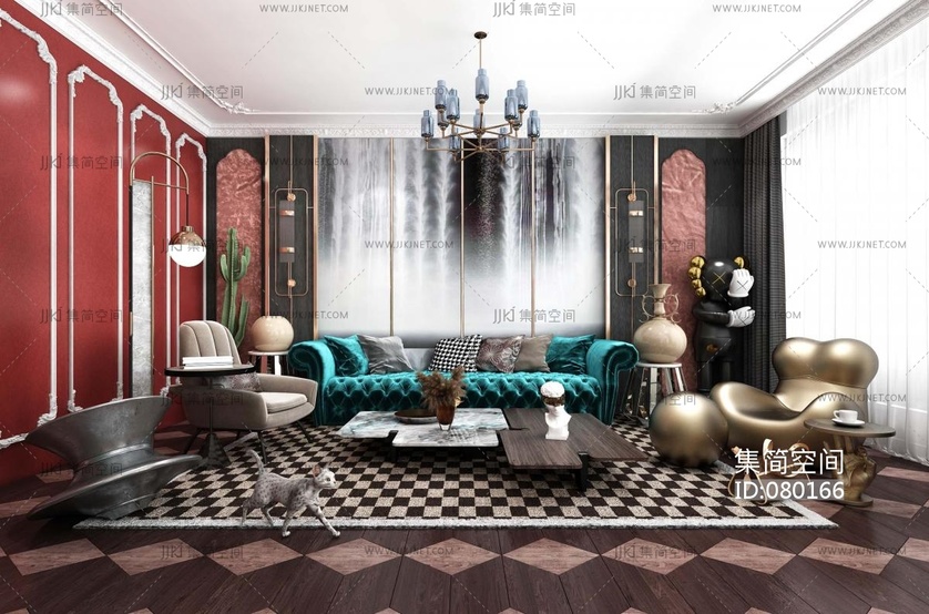 现代轻奢风格,美式新古典客厅 3d模型下载 [模型ID:80166]