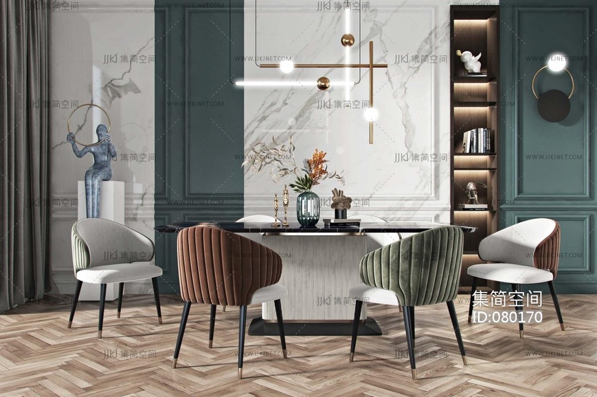 现代轻奢餐厅 现代餐桌椅组合 3d模型下载 [模型ID:80170]