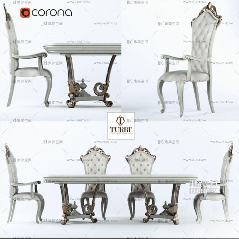 欧式法式,长条餐桌椅子 3d模型下载 [模型ID:80179]