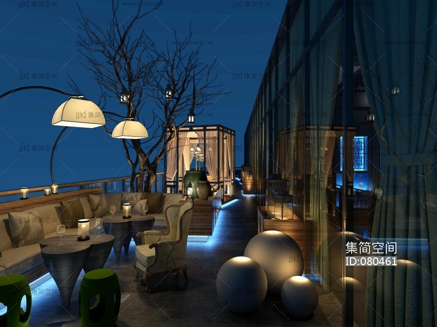 新中式露台,景观阳台,花园 3d模型下载 [模型ID:80461]