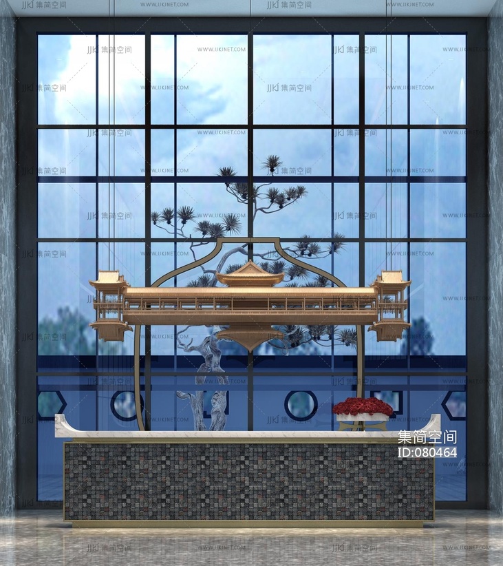 新中式前台,服务台,接待台 3d模型下载 [模型ID:80464]