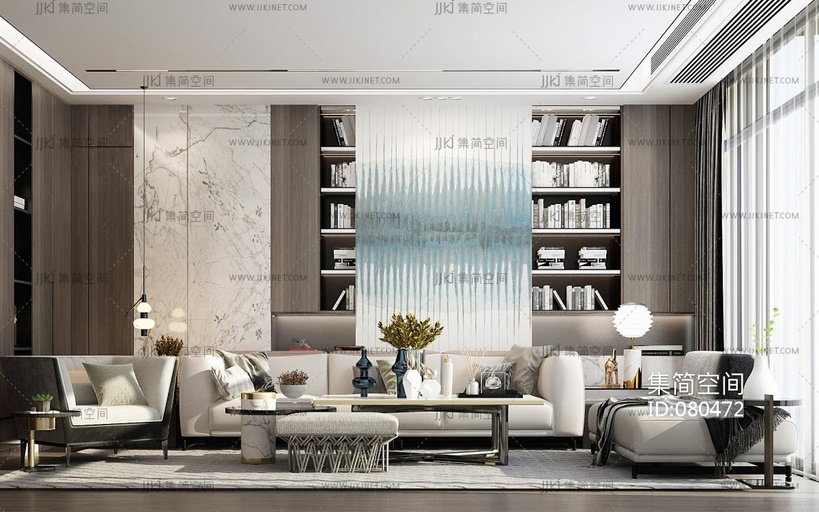 现代轻奢客厅,沙发茶几单人沙发 3d模型下载 [模型ID:80472]