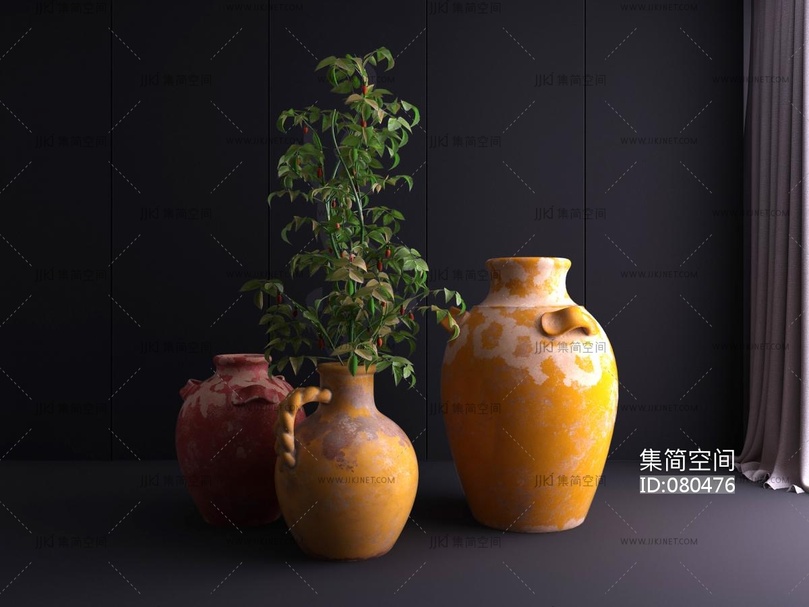 北欧新中式,罐子,陶土罐,花瓶 3d模型下载 [模型ID:80476]