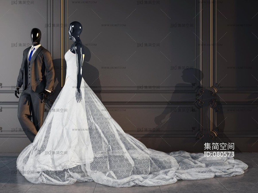 现代女士女士西装西服婚纱服装模特 3d模型下载 [模型ID:80573]