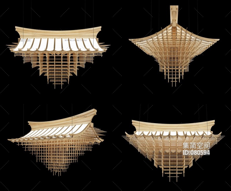 新中式古建屋檐造型吊灯 3d模型下载 [模型ID:80594]
