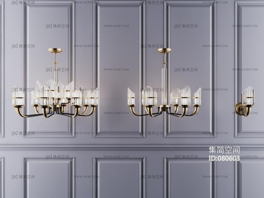 欧式现代,新中式水晶铁艺吊灯 3d模型下载 [模型ID:80603]