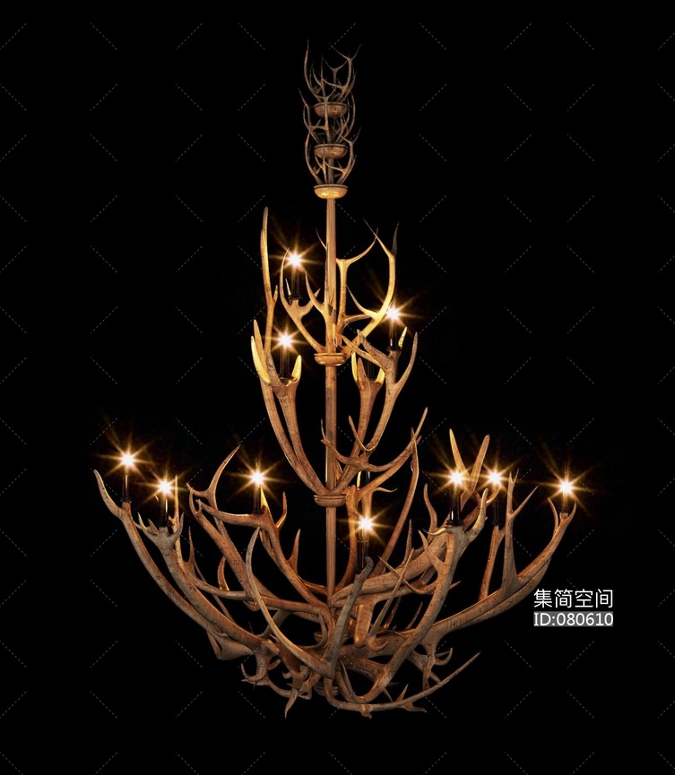 北欧美式羊角灯树枝造型异形吊灯 3d模型下载 [模型ID:80610]