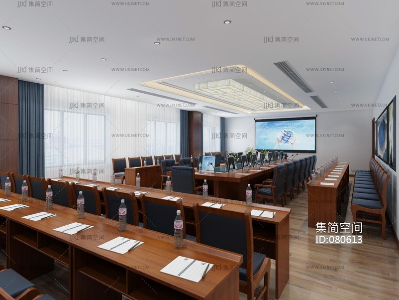 国旗政府机关单位大会议室,视频会议室,会议桌椅 3d模型下载 [模型ID:80613]