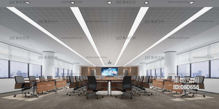 现代大会议室,会议桌办公椅 3d模型下载 [模型ID:80656]