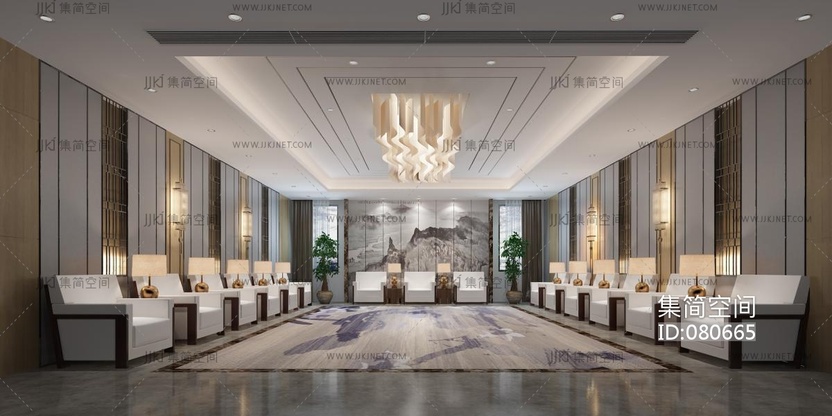 新中式接待室,洽谈室,沙发 3d模型下载 [模型ID:80665]