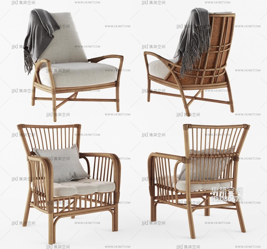 新中式东南亚户外藤编编织休息椅子藤椅 3d模型下载 [模型ID:80672]