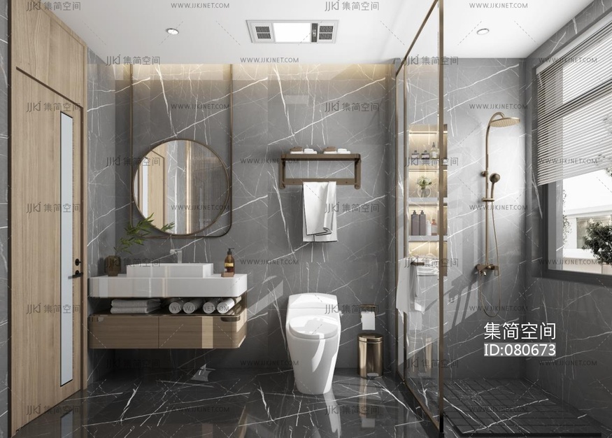现代卫生间,花洒,马桶 3d模型下载 [模型ID:80673]
