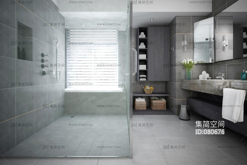 灰色系卫生间3d模型下载