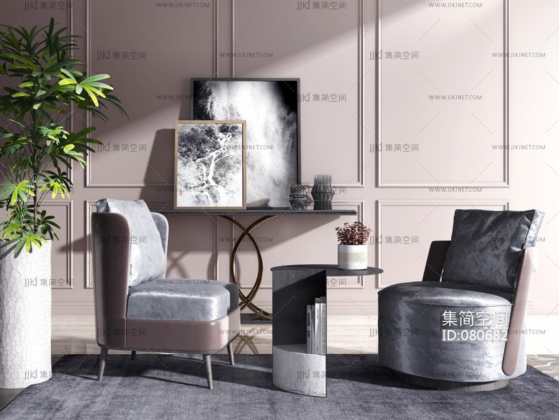 现代休闲椅单人沙发椅子茶几边几摆台 3d模型下载 [模型ID:80682]