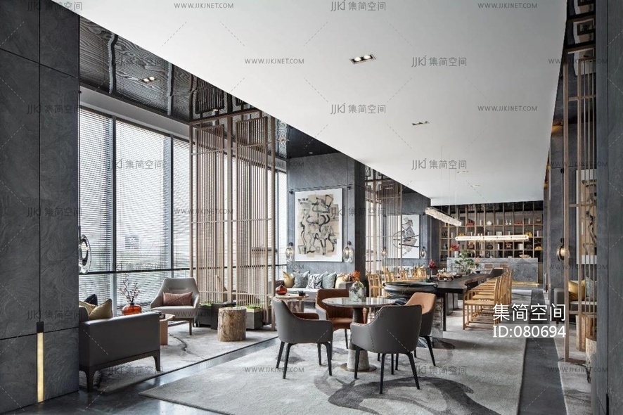 新中式风格酒店售楼处,大堂吧 3d模型下载 [模型ID:80694]
