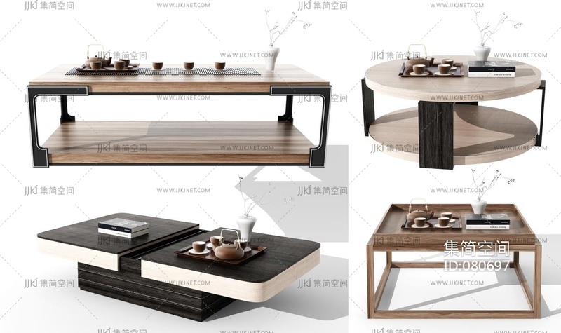 新中式茶几,茶具摆件 3d模型下载 [模型ID:80697]