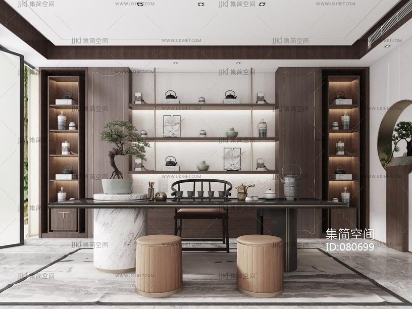 新中式茶室,书房茶桌椅 3d模型下载 [模型ID:80699]