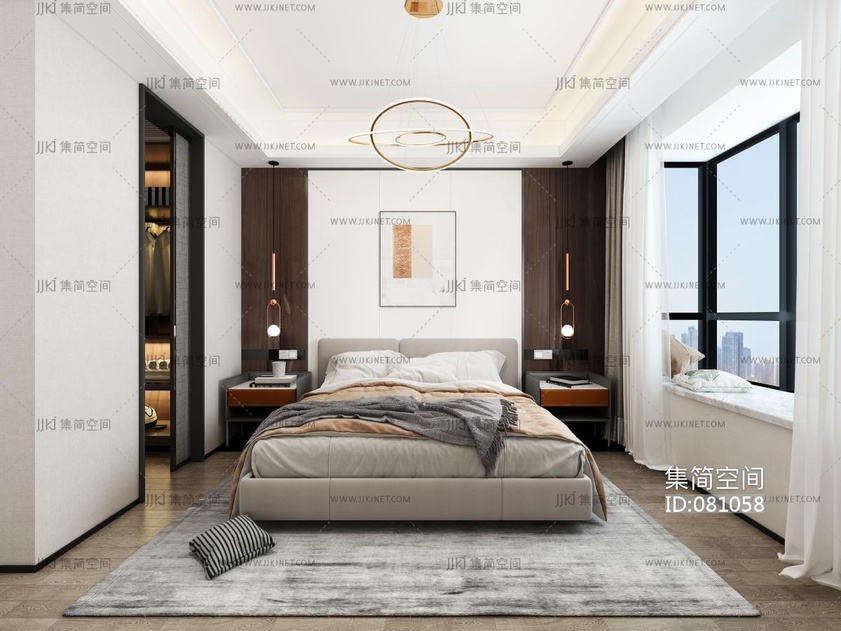 北欧现代卧室,床品模型,双人床 3d模型下载 [模型ID:81058]