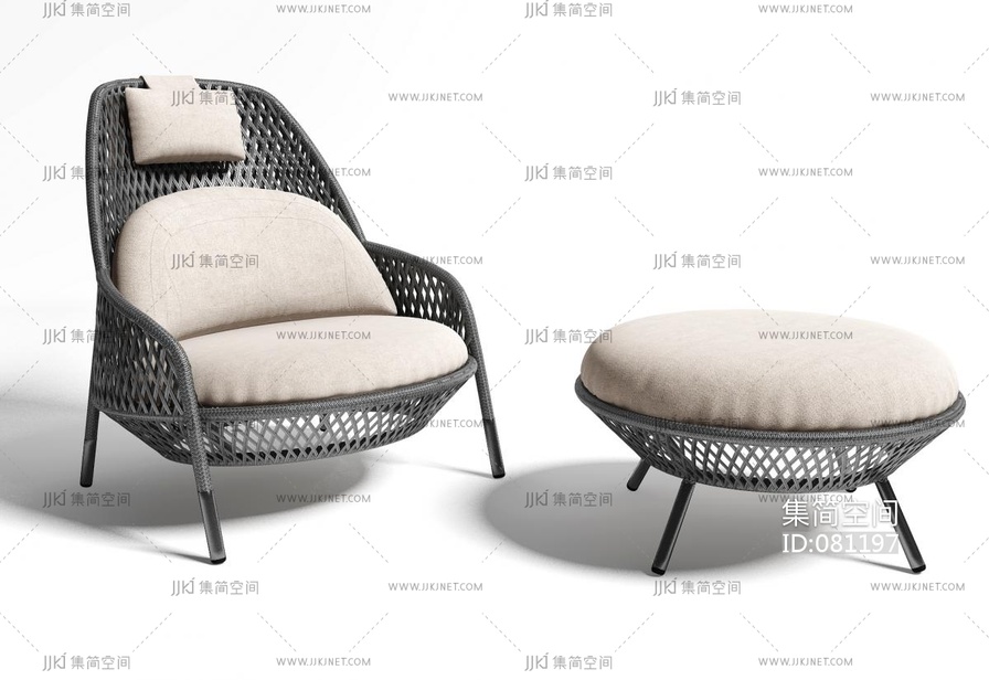 现代户外藤编,编织,休闲椅 3d模型下载 [模型ID:81197]