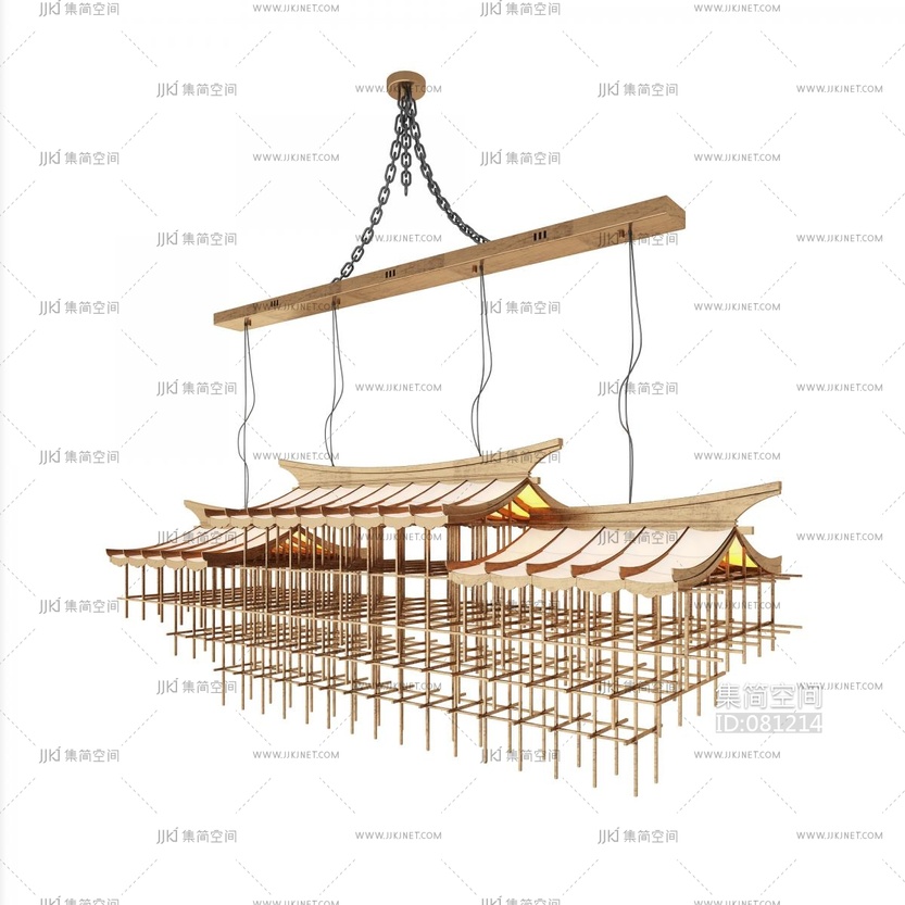 现代新中式艺术吊灯_竹子主题装饰吊灯3D模型3d模型下载