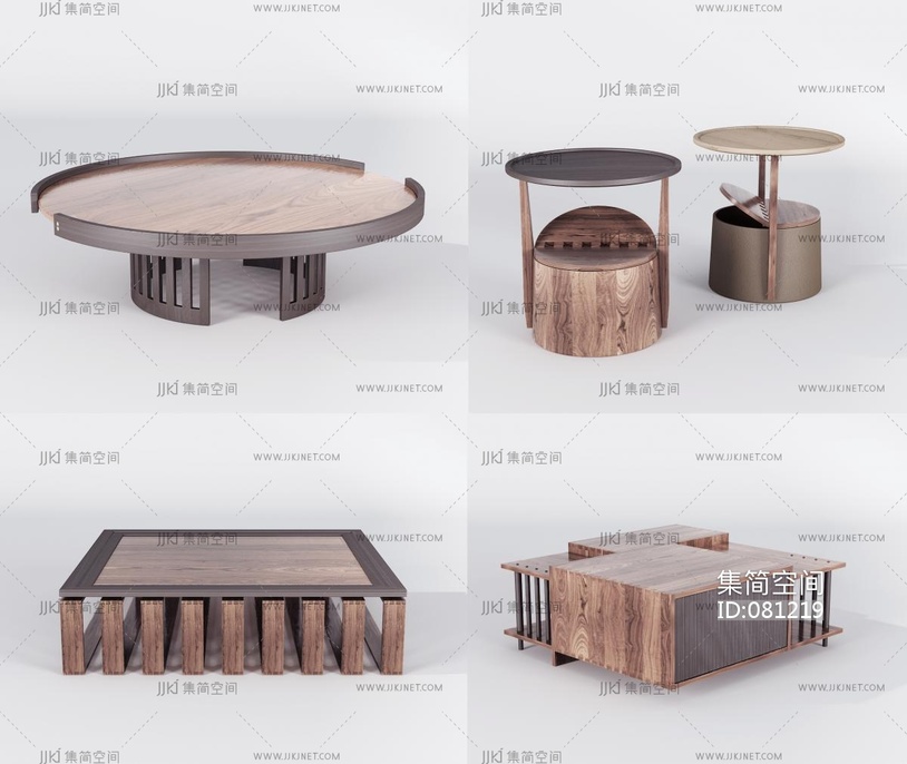 圆形方形茶几,边几角几灯几 3d模型下载 [模型ID:81219]