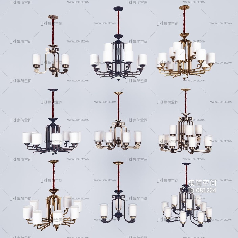 新中式欧式铁艺金属吊灯 3d模型下载 [模型ID:81224]