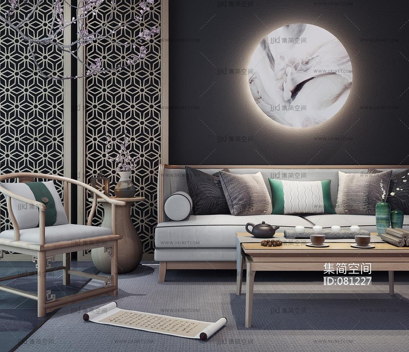 新中式沙发,罗汉床 3d模型下载 [模型ID:81227]