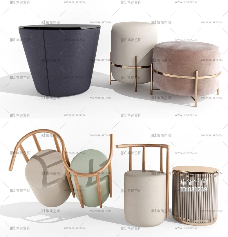 凳子边几,坐凳,坐蹲,圆墩 3d模型下载 [模型ID:81239]