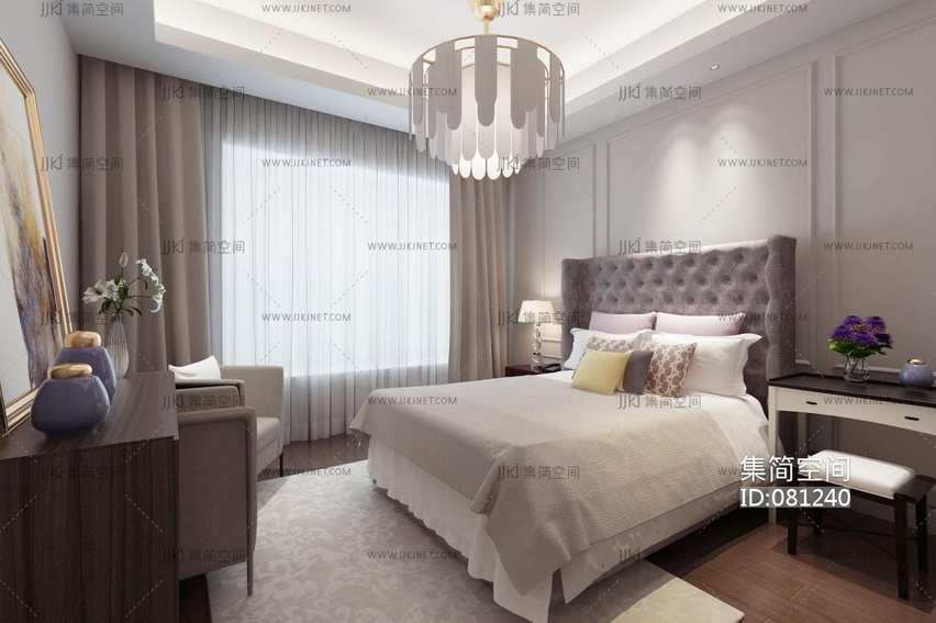 6法式中古家居卧室_主卧_飘窗卧室_高级灰卧室3D模型cr3d模型下载
