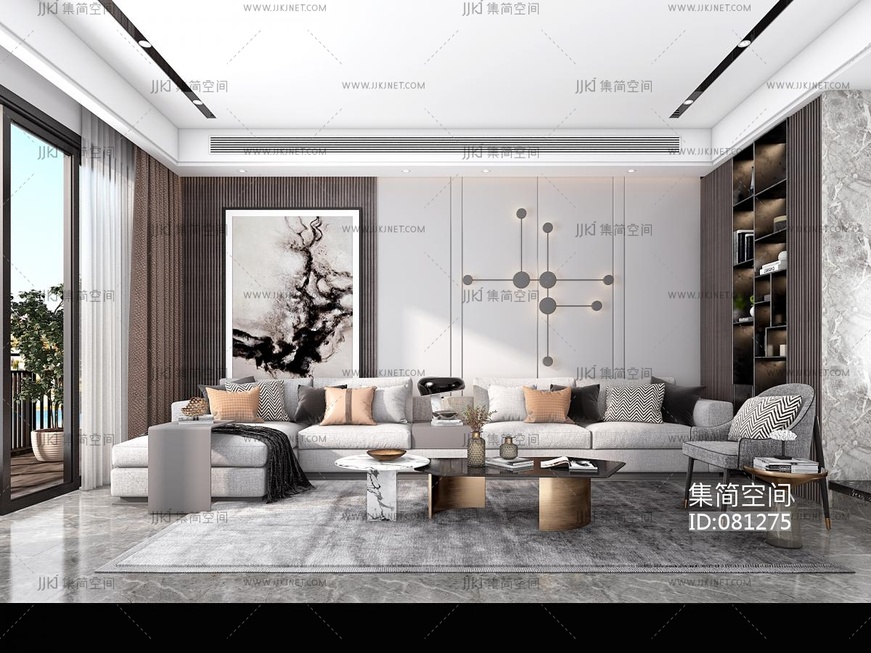 现代样板间客厅,转角沙发,茶几 3d模型下载 [模型ID:81275]