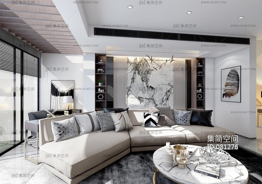 现代别墅客餐厅厨房,沙发 3d模型下载 [模型ID:81276]