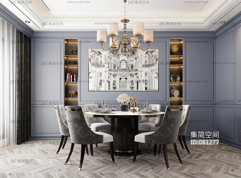 美式欧式法式餐厅,圆形餐桌椅子, 3d模型下载 [模型ID:81277]