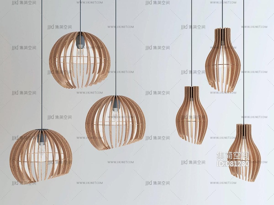 东南亚日式木质小吊灯 3d模型下载 [模型ID:81280]